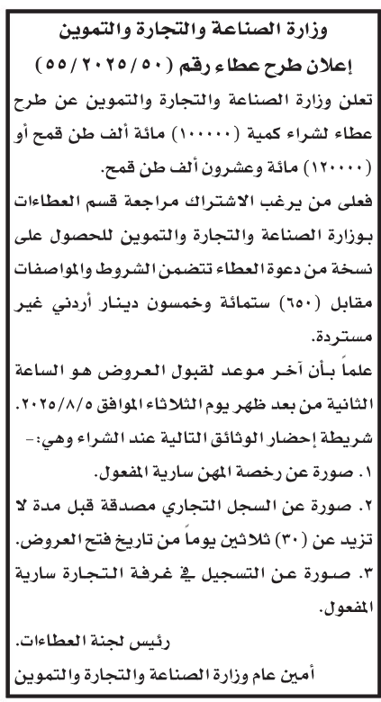 شراء كمية (100000) مائة الف طن قمح او (120000) مائة وعشرون الف طن قمح