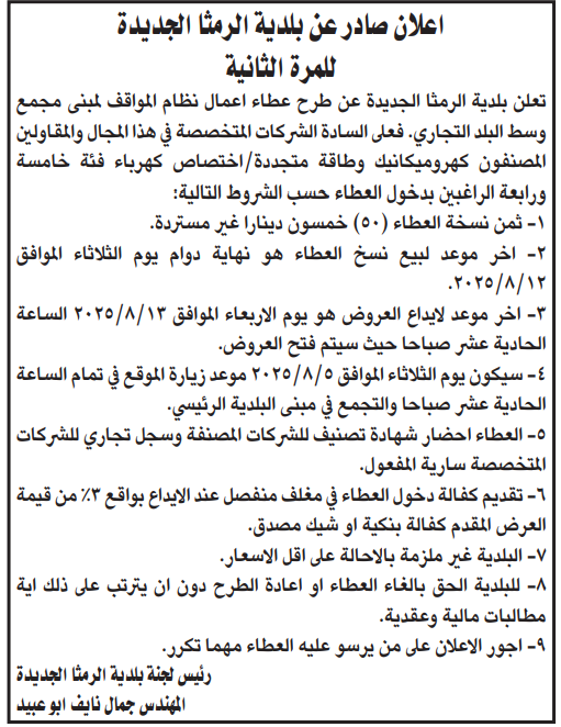 • إبحث في أكبر وأشمل قاعدة بيانات على مستوى الأردن, تحتوي على جميع العطاءات والمناقصات الحكومية، الدولية، الخاصة، والعسكرية مصنفة ومبوبة منذ عام 2013 حتى تاريخ اليوم!