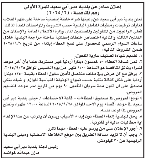 • إبحث في أكبر وأشمل قاعدة بيانات على مستوى الأردن, تحتوي على جميع العطاءات والمناقصات الحكومية، الدولية، الخاصة، والعسكرية مصنفة ومبوبة منذ عام 2013 حتى تاريخ اليوم!
