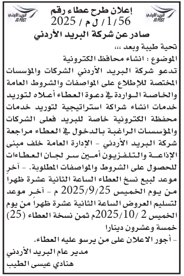 • إبحث في أكبر وأشمل قاعدة بيانات على مستوى الأردن, تحتوي على جميع العطاءات والمناقصات الحكومية، الدولية، الخاصة، والعسكرية مصنفة ومبوبة منذ عام 2013 حتى تاريخ اليوم!