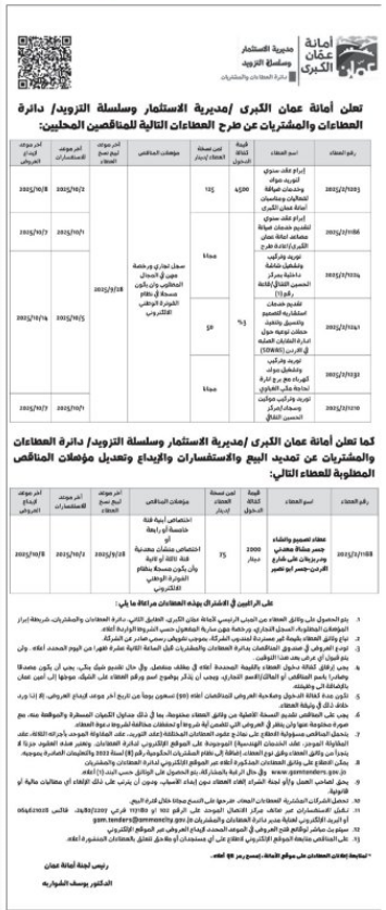 • إبحث في أكبر وأشمل قاعدة بيانات على مستوى الأردن, تحتوي على جميع العطاءات والمناقصات الحكومية، الدولية، الخاصة، والعسكرية مصنفة ومبوبة منذ عام 2013 حتى تاريخ اليوم!