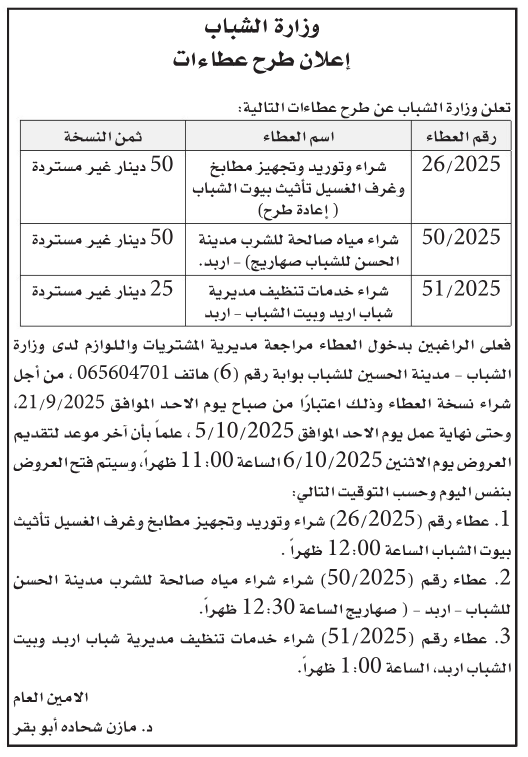 عطاءات تغلق اليوم
