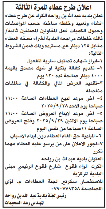 • إبحث في أكبر وأشمل قاعدة بيانات على مستوى الأردن, تحتوي على جميع العطاءات والمناقصات الحكومية، الدولية، الخاصة، والعسكرية مصنفة ومبوبة منذ عام 2013 حتى تاريخ اليوم!