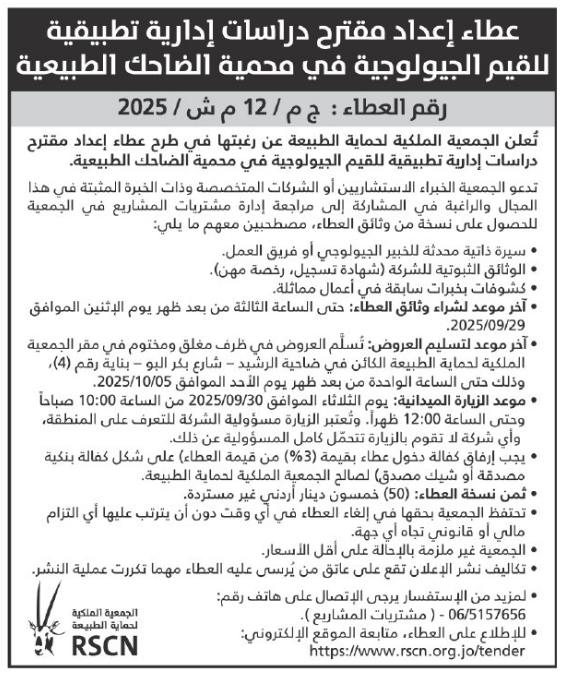 • إبحث في أكبر وأشمل قاعدة بيانات على مستوى الأردن, تحتوي على جميع العطاءات والمناقصات الحكومية، الدولية، الخاصة، والعسكرية مصنفة ومبوبة منذ عام 2013 حتى تاريخ اليوم!