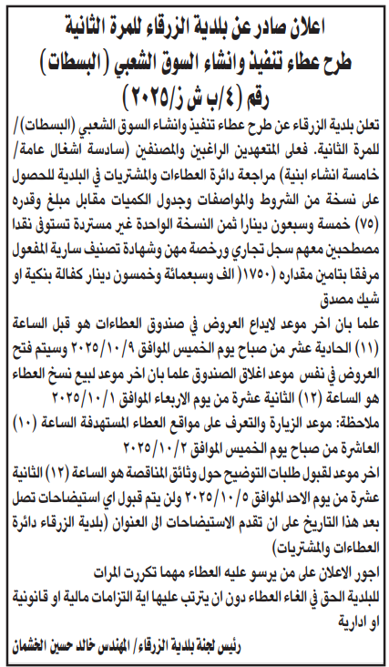 • إبحث في أكبر وأشمل قاعدة بيانات على مستوى الأردن, تحتوي على جميع العطاءات والمناقصات الحكومية، الدولية، الخاصة، والعسكرية مصنفة ومبوبة منذ عام 2013 حتى تاريخ اليوم!