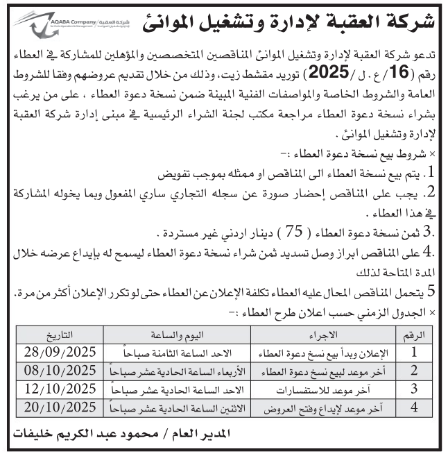 عطاءات تغلق اليوم