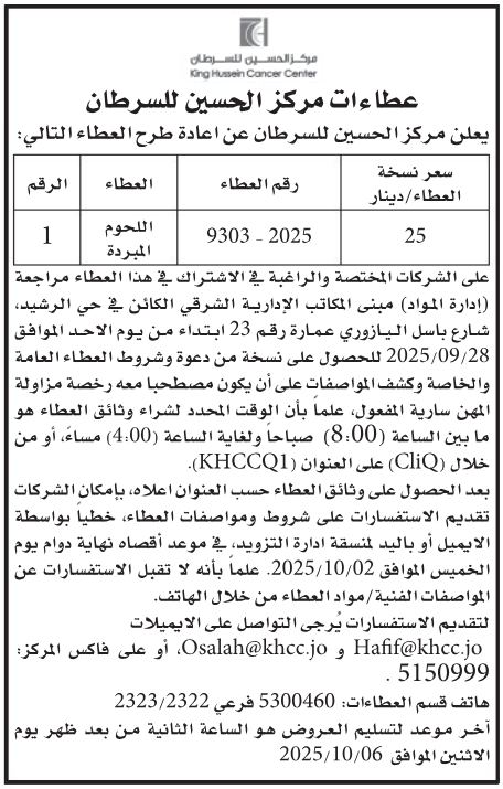 • إبحث في أكبر وأشمل قاعدة بيانات على مستوى الأردن, تحتوي على جميع العطاءات والمناقصات الحكومية، الدولية، الخاصة، والعسكرية مصنفة ومبوبة منذ عام 2013 حتى تاريخ اليوم!