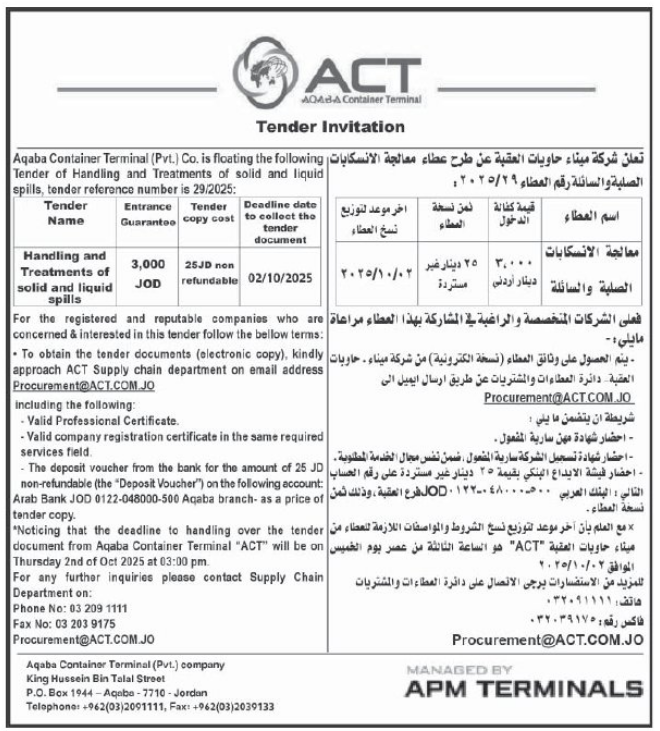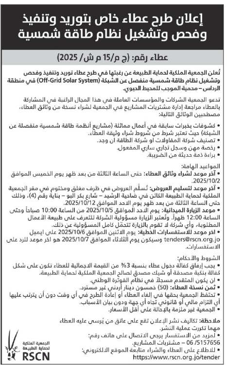 • إبحث في أكبر وأشمل قاعدة بيانات على مستوى الأردن, تحتوي على جميع العطاءات والمناقصات الحكومية، الدولية، الخاصة، والعسكرية مصنفة ومبوبة منذ عام 2013 حتى تاريخ اليوم!