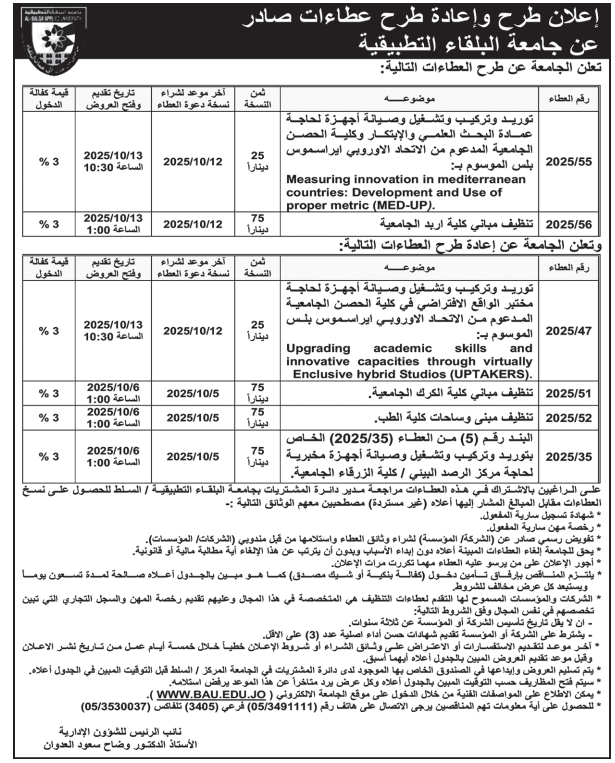 • إبحث في أكبر وأشمل قاعدة بيانات على مستوى الأردن, تحتوي على جميع العطاءات والمناقصات الحكومية، الدولية، الخاصة، والعسكرية مصنفة ومبوبة منذ عام 2013 حتى تاريخ اليوم!