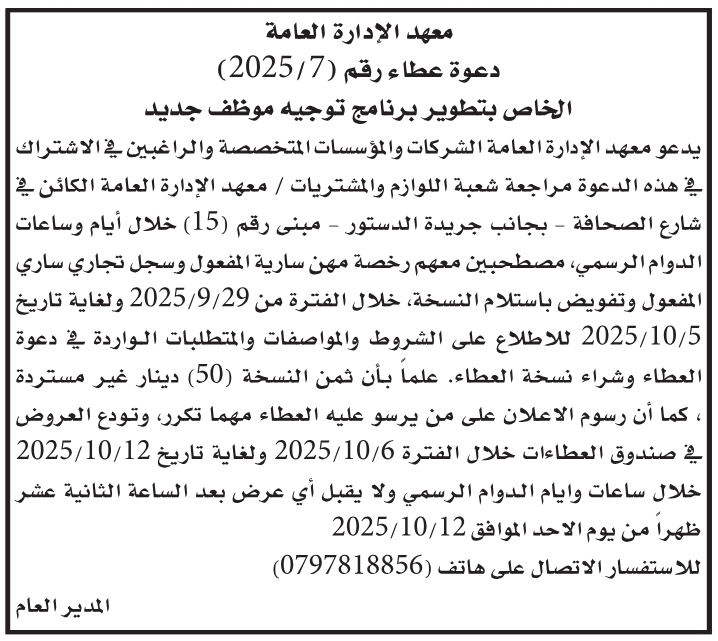 • إبحث في أكبر وأشمل قاعدة بيانات على مستوى الأردن, تحتوي على جميع العطاءات والمناقصات الحكومية، الدولية، الخاصة، والعسكرية مصنفة ومبوبة منذ عام 2013 حتى تاريخ اليوم!