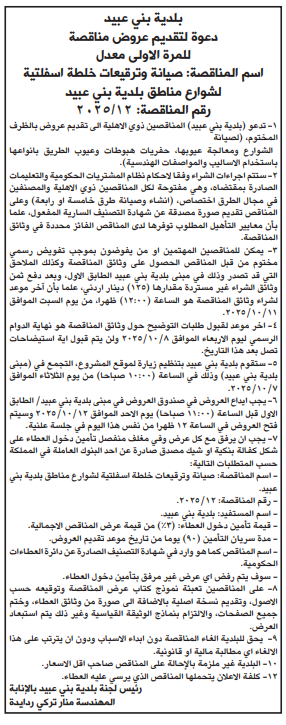 صيانة ترقيعات خلطة اسفلتية لشوارع بلدية بني عبيد
