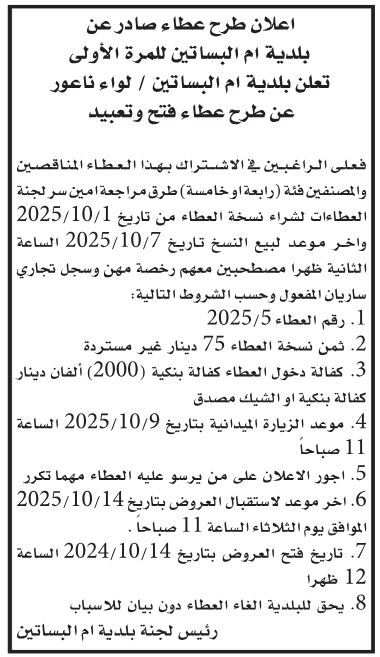 • إبحث في أكبر وأشمل قاعدة بيانات على مستوى الأردن, تحتوي على جميع العطاءات والمناقصات الحكومية، الدولية، الخاصة، والعسكرية مصنفة ومبوبة منذ عام 2013 حتى تاريخ اليوم!