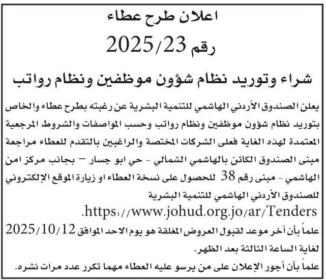 شراء وتوريد نظام شؤون موظفين ونظام رواتب