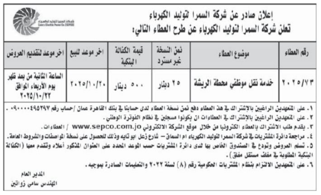 • إبحث في أكبر وأشمل قاعدة بيانات على مستوى الأردن, تحتوي على جميع العطاءات والمناقصات الحكومية، الدولية، الخاصة، والعسكرية مصنفة ومبوبة منذ عام 2013 حتى تاريخ اليوم!