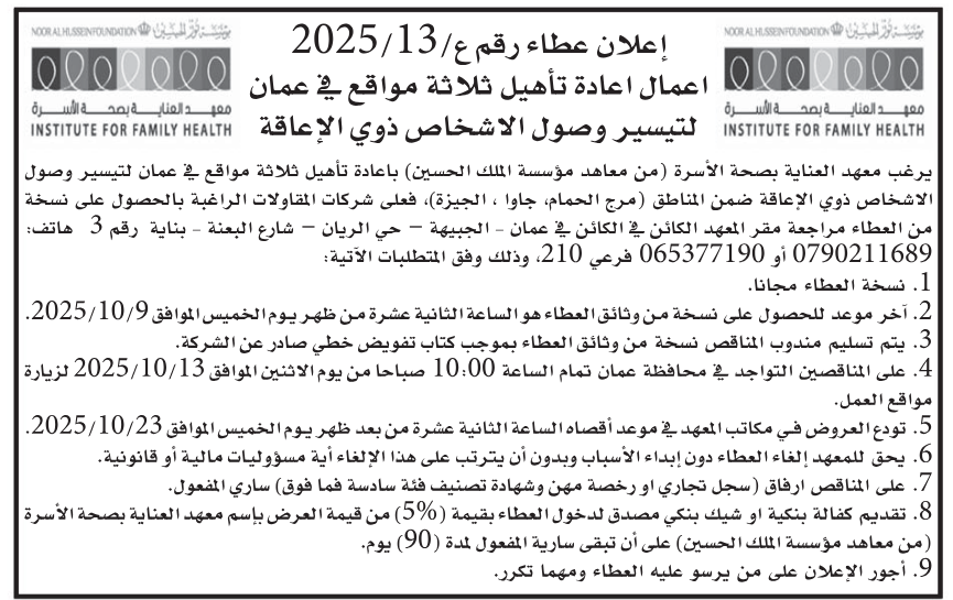 تاهيل ثلاثة مواقع في عمان لتيسر وصول الاشخاص ذوي الاعاقة