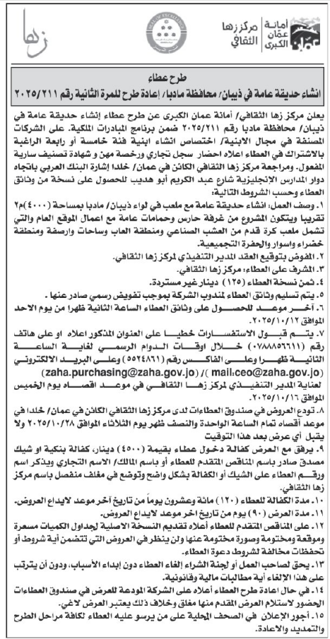 • إبحث في أكبر وأشمل قاعدة بيانات على مستوى الأردن, تحتوي على جميع العطاءات والمناقصات الحكومية، الدولية، الخاصة، والعسكرية مصنفة ومبوبة منذ عام 2013 حتى تاريخ اليوم!