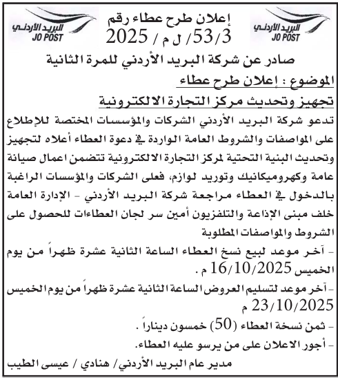 • إبحث في أكبر وأشمل قاعدة بيانات على مستوى الأردن, تحتوي على جميع العطاءات والمناقصات الحكومية، الدولية، الخاصة، والعسكرية مصنفة ومبوبة منذ عام 2013 حتى تاريخ اليوم!