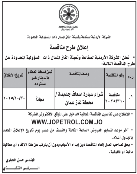 • إبحث في أكبر وأشمل قاعدة بيانات على مستوى الأردن, تحتوي على جميع العطاءات والمناقصات الحكومية، الدولية، الخاصة، والعسكرية مصنفة ومبوبة منذ عام 2013 حتى تاريخ اليوم!