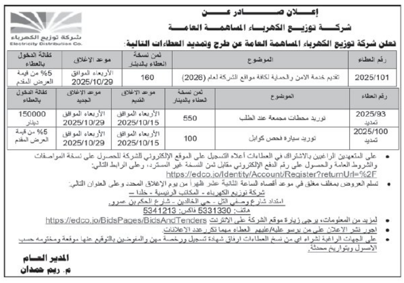 • إبحث في أكبر وأشمل قاعدة بيانات على مستوى الأردن, تحتوي على جميع العطاءات والمناقصات الحكومية، الدولية، الخاصة، والعسكرية مصنفة ومبوبة منذ عام 2013 حتى تاريخ اليوم!