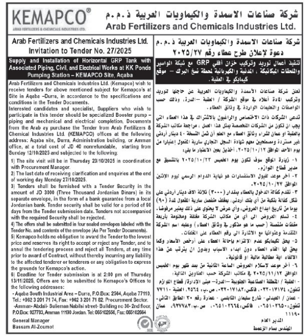 • إبحث في أكبر وأشمل قاعدة بيانات على مستوى الأردن, تحتوي على جميع العطاءات والمناقصات الحكومية، الدولية، الخاصة، والعسكرية مصنفة ومبوبة منذ عام 2013 حتى تاريخ اليوم!
