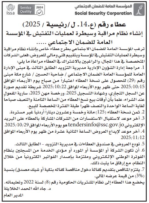 انشاء نظام مراقبة وسيطرة لعمليات التفتيش في المؤسسة العامة للضمان الاجتماعي