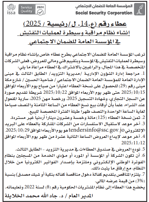 انشاء نظام مراقبة وسيطرة لعمليات التفتيش في المؤسسة العامة للضمان الاجتماعي