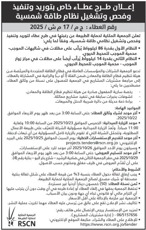 توريد وتنفيذ وفحص وتشغيل نظام طاقة شمسية