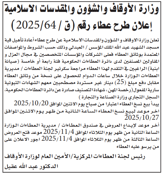 عطاءات تغلق اليوم