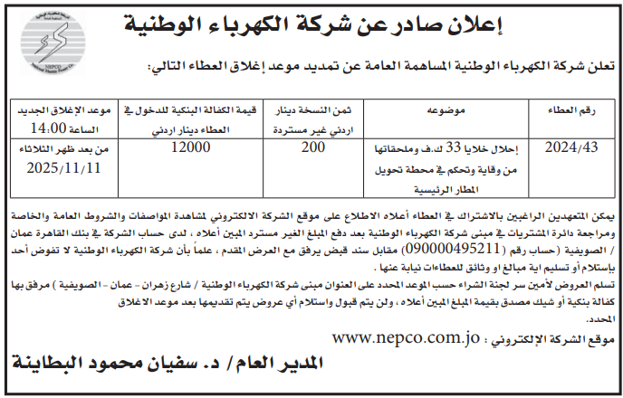 • إبحث في أكبر وأشمل قاعدة بيانات على مستوى الأردن, تحتوي على جميع العطاءات والمناقصات الحكومية، الدولية، الخاصة، والعسكرية مصنفة ومبوبة منذ عام 2013 حتى تاريخ اليوم!