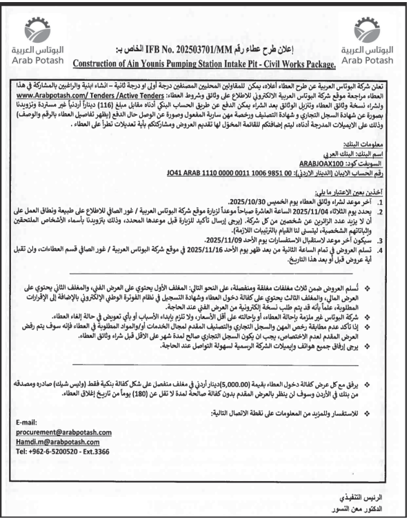 احدث العطاءات ذات صلة
