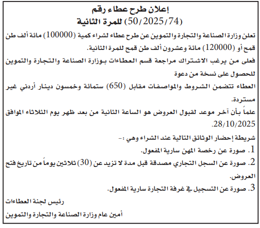 • إبحث في أكبر وأشمل قاعدة بيانات على مستوى الأردن, تحتوي على جميع العطاءات والمناقصات الحكومية، الدولية، الخاصة، والعسكرية مصنفة ومبوبة منذ عام 2013 حتى تاريخ اليوم!