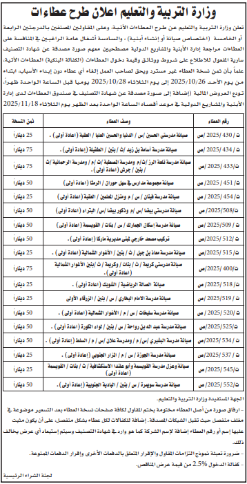 عطاءات تغلق اليوم