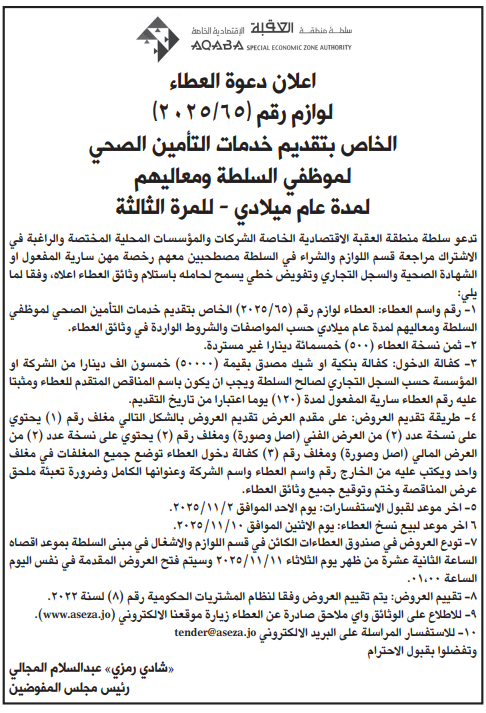 • إبحث في أكبر وأشمل قاعدة بيانات على مستوى الأردن, تحتوي على جميع العطاءات والمناقصات الحكومية، الدولية، الخاصة، والعسكرية مصنفة ومبوبة منذ عام 2013 حتى تاريخ اليوم!