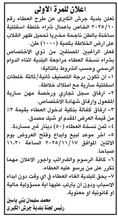 عطاءات تغلق اليوم