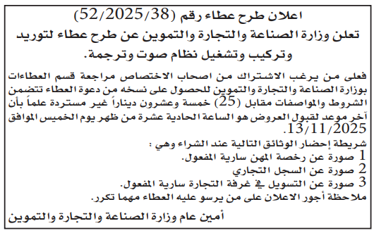 توريد وتركيب وتشغيل نظام صوت وترجمة