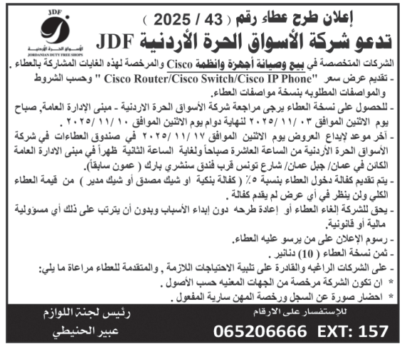 إانضم الآن إلى عائلة تندرز وتمتع بميزات العضوية حتى لا تفوتك فرص الشراء المطروحة بالسوق الأردني, من أكبر وأدق مصدر للعطاءات والمناقصات والفرص التجارية, الحكومية والدولية والخاصة !
