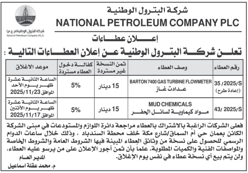 عطاءات تغلق اليوم