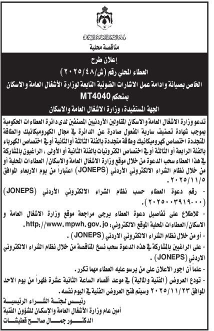 • إبحث في أكبر وأشمل قاعدة بيانات على مستوى الأردن, تحتوي على جميع العطاءات والمناقصات الحكومية، الدولية، الخاصة، والعسكرية مصنفة ومبوبة منذ عام 2013 حتى تاريخ اليوم!