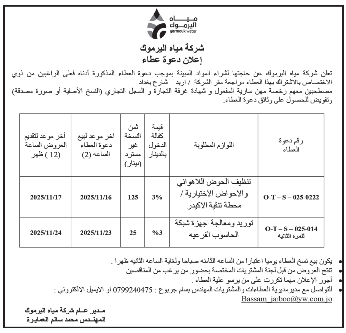 عطاءات تغلق اليوم