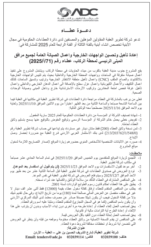 • إبحث في أكبر وأشمل قاعدة بيانات على مستوى الأردن, تحتوي على جميع العطاءات والمناقصات الحكومية، الدولية، الخاصة، والعسكرية مصنفة ومبوبة منذ عام 2013 حتى تاريخ اليوم!