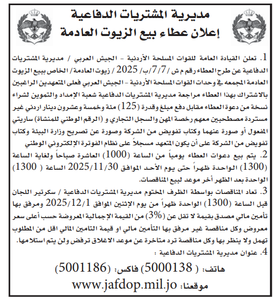 • إبحث في أكبر وأشمل قاعدة بيانات على مستوى الأردن, تحتوي على جميع العطاءات والمناقصات الحكومية، الدولية، الخاصة، والعسكرية مصنفة ومبوبة منذ عام 2013 حتى تاريخ اليوم!
