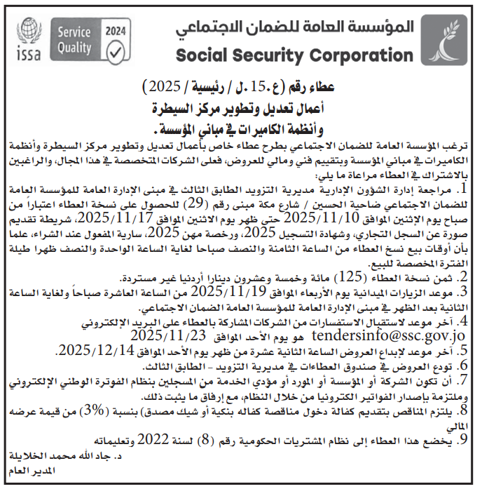 • إبحث في أكبر وأشمل قاعدة بيانات على مستوى الأردن, تحتوي على جميع العطاءات والمناقصات الحكومية، الدولية، الخاصة، والعسكرية مصنفة ومبوبة منذ عام 2013 حتى تاريخ اليوم!