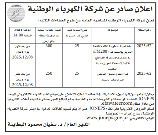 • إبحث في أكبر وأشمل قاعدة بيانات على مستوى الأردن, تحتوي على جميع العطاءات والمناقصات الحكومية، الدولية، الخاصة، والعسكرية مصنفة ومبوبة منذ عام 2013 حتى تاريخ اليوم!