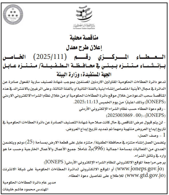 • إبحث في أكبر وأشمل قاعدة بيانات على مستوى الأردن, تحتوي على جميع العطاءات والمناقصات الحكومية، الدولية، الخاصة، والعسكرية مصنفة ومبوبة منذ عام 2013 حتى تاريخ اليوم!