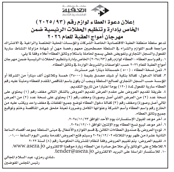 • إبحث في أكبر وأشمل قاعدة بيانات على مستوى الأردن, تحتوي على جميع العطاءات والمناقصات الحكومية، الدولية، الخاصة، والعسكرية مصنفة ومبوبة منذ عام 2013 حتى تاريخ اليوم!