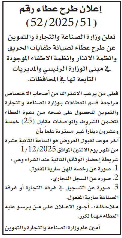 عطاءات تغلق اليوم