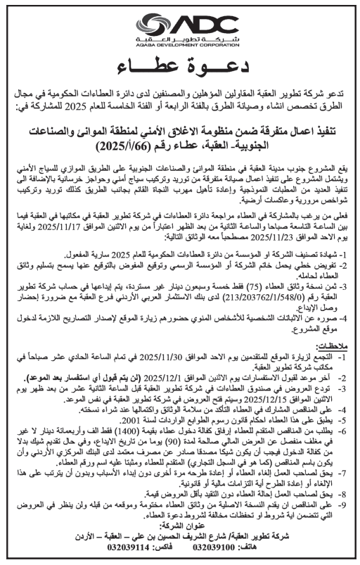 • إبحث في أكبر وأشمل قاعدة بيانات على مستوى الأردن, تحتوي على جميع العطاءات والمناقصات الحكومية، الدولية، الخاصة، والعسكرية مصنفة ومبوبة منذ عام 2013 حتى تاريخ اليوم!