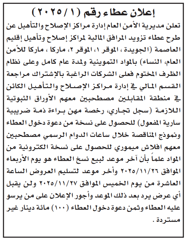 عطاءات تغلق اليوم