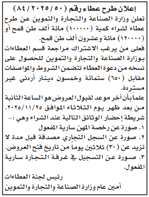 شراء كمية (100000) مائة الف طن قمح او (120000) مائة وعشرون الف طن قمح