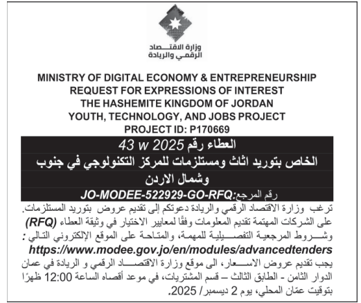 توريد اثاث ومستلزمات للمركز التنكولوجي